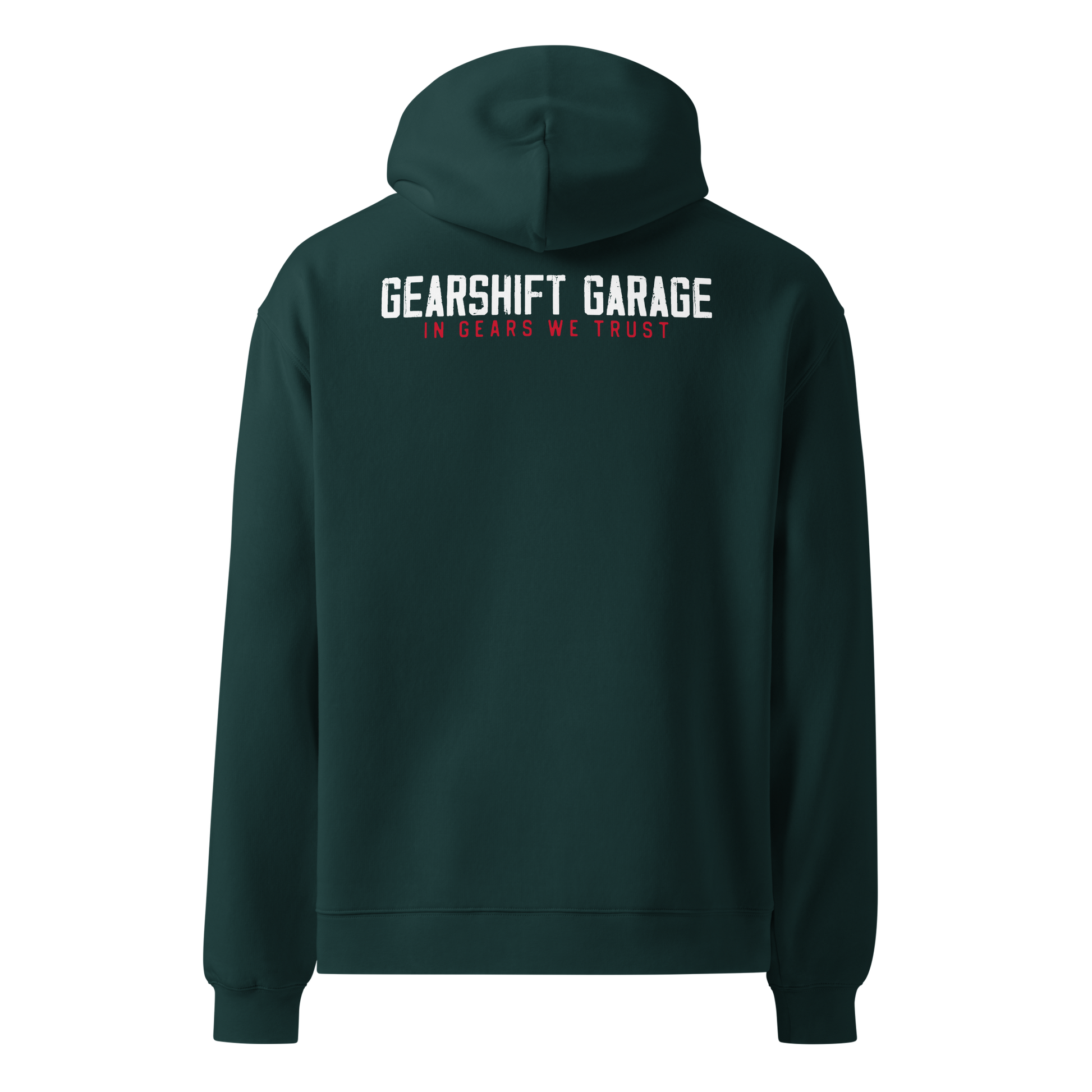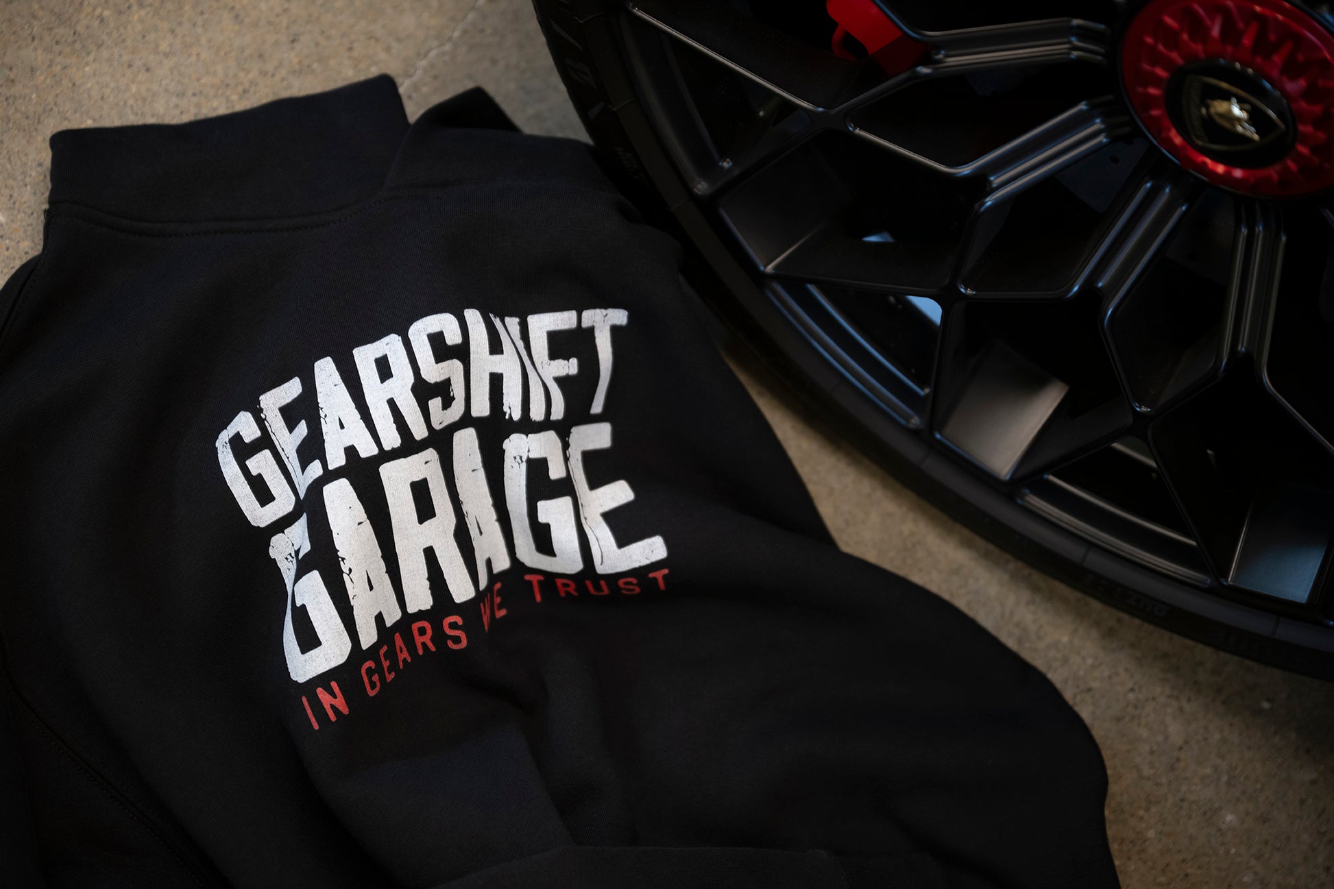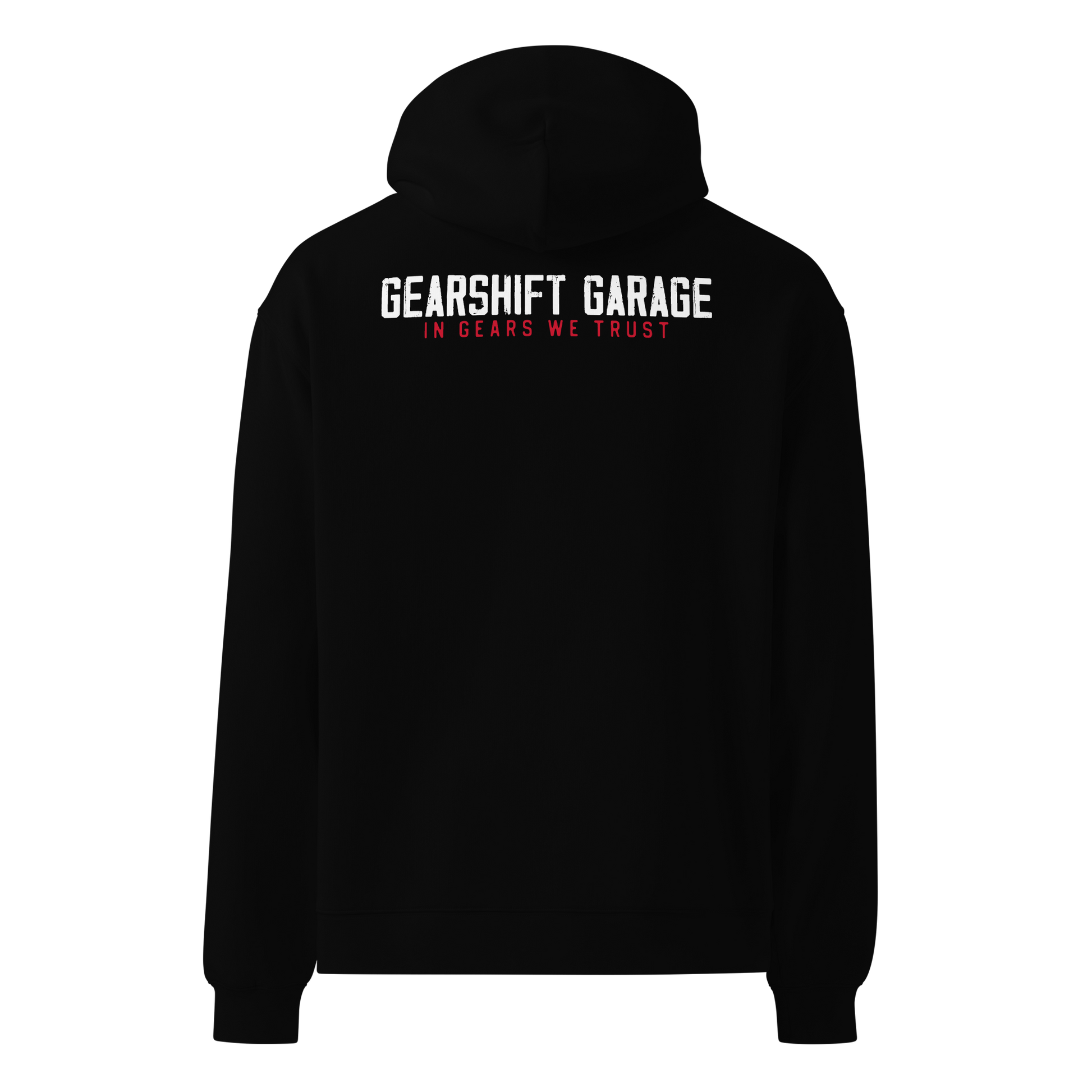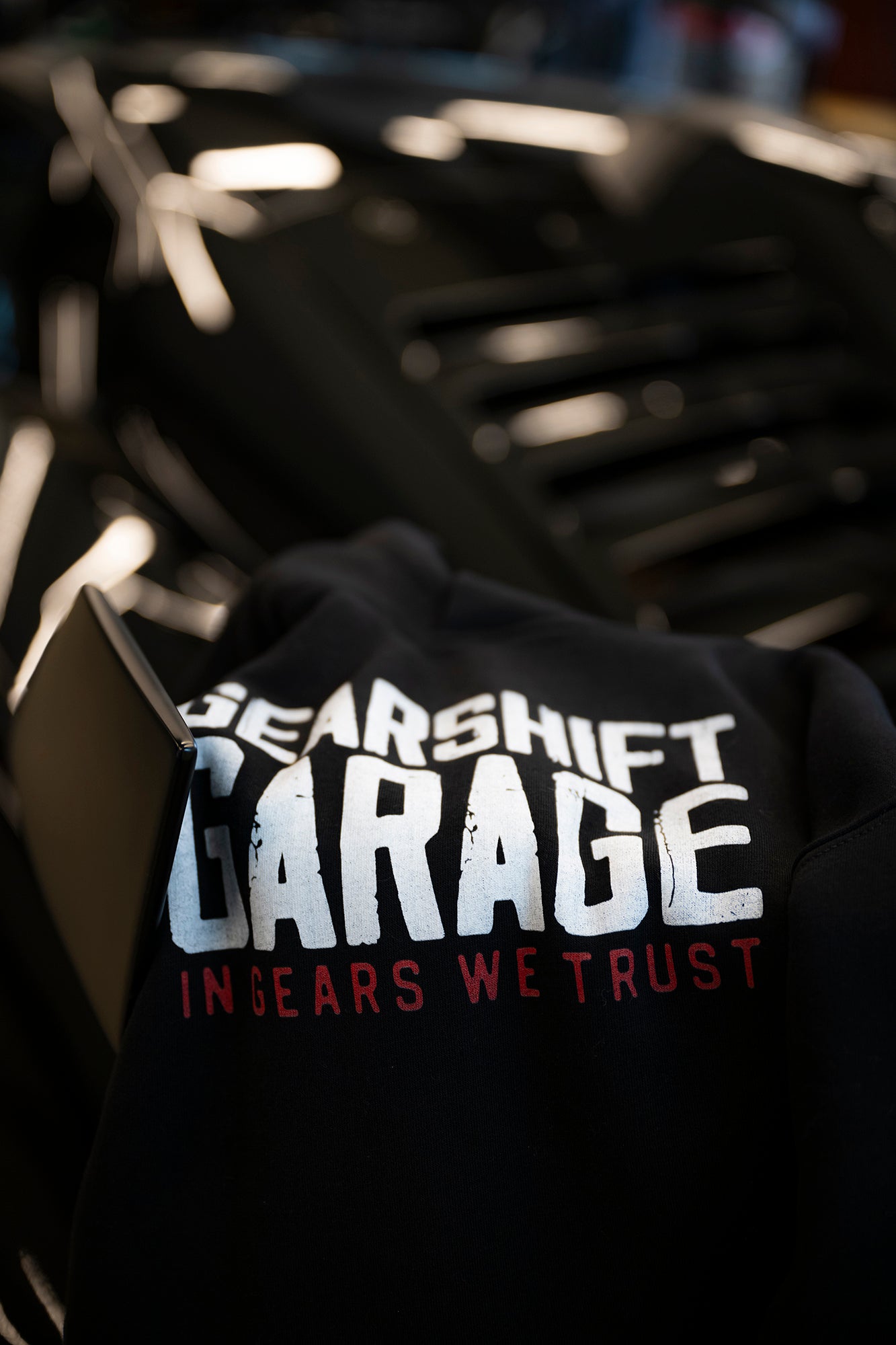 Pull on the Gearshift Garage Hoodie and rev up your casual wardrobe. Emblazoned with the Gearshift Garage logo in bold lettering, punctuated by the mantra "IN GEARS WE TRUST" in eye-catching red. It’s a cozy, stylish nod to those with a passion for cars and mechanics. The soft, durable material and classic design provide a comfortable fit for both work and play. With its kangaroo pocket and adjustable hood, it’s practical for any setting where you want to showcase your automotive enthusiasm.